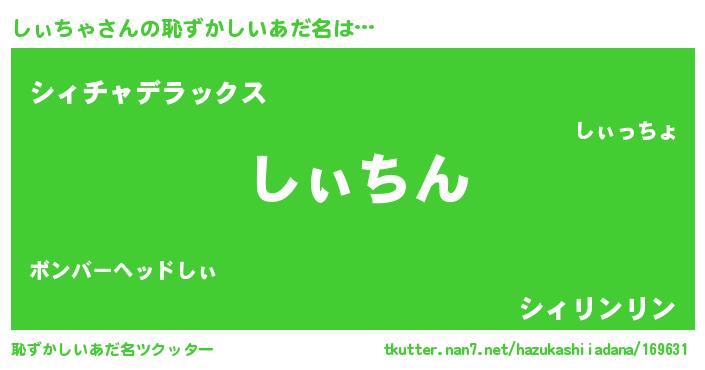 | 意味不明あだ名 | 『永久保存しぃちゃ』『自称しぃちゃ』 |