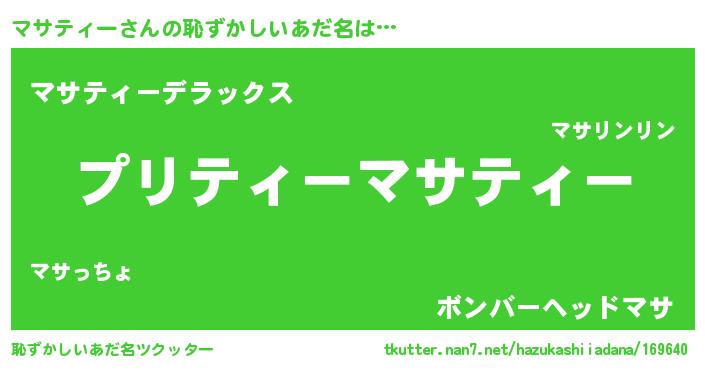 | ヒーロー風カッコイイあだ名 | 『スーパーマサティー』『魔戒騎士マサ』 |