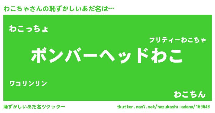 | ヘコむあだ名 | 『なまこ酢』『わこちゃ(遠い目)』 |
