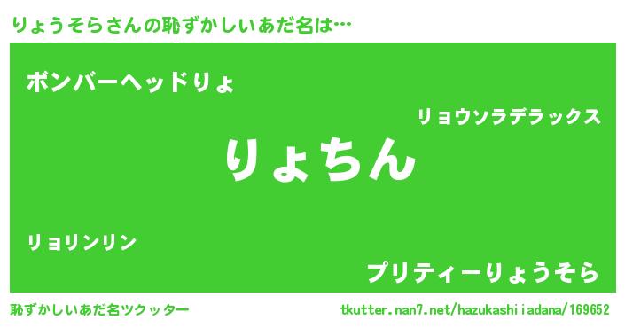 | ヘコむあだ名 | 『りょうそら(爆)』『りょっふぃ~』 |