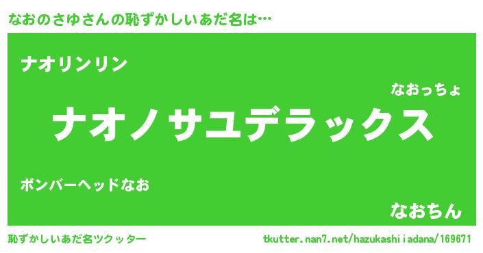 | 男性向けラノベタイトル風あだ名 | 『Re:なおのさゆから始める異世界生活』 |