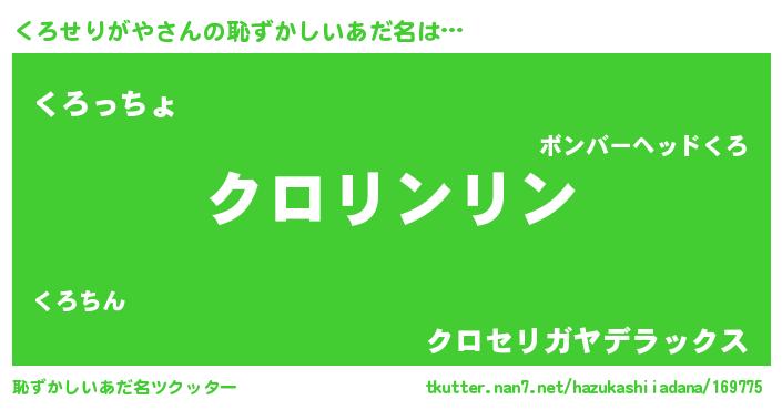 | 男性向けラノベタイトル風あだ名 | 『この素晴らしい世界にくろせりがやを!』 |