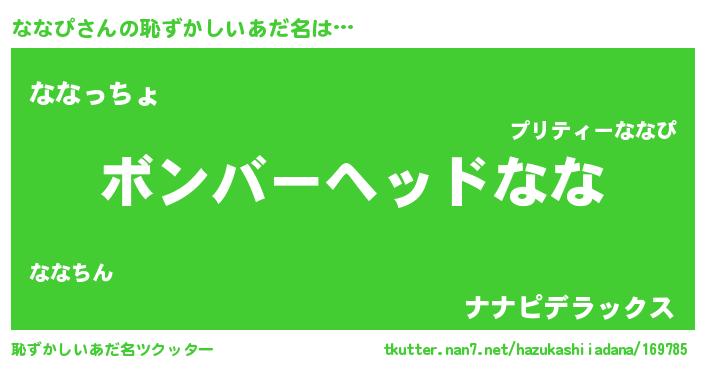 | ヘコむあだ名 | 『豆乳』『ななにゅー』『ななっぺ』 |