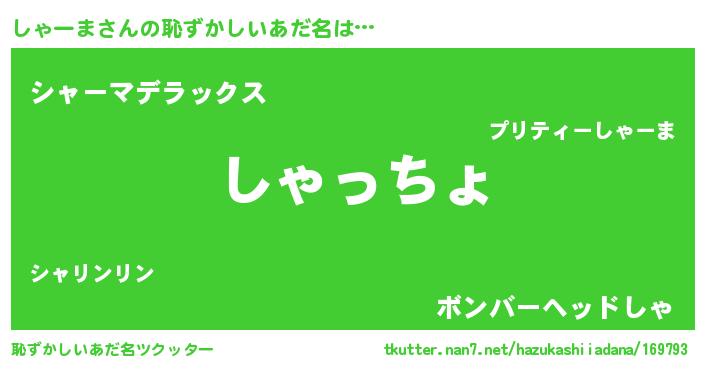 | ヒーロー風カッコイイあだ名 | 『ウルトラしゃーまマン』『炎刃騎士シャ』 |