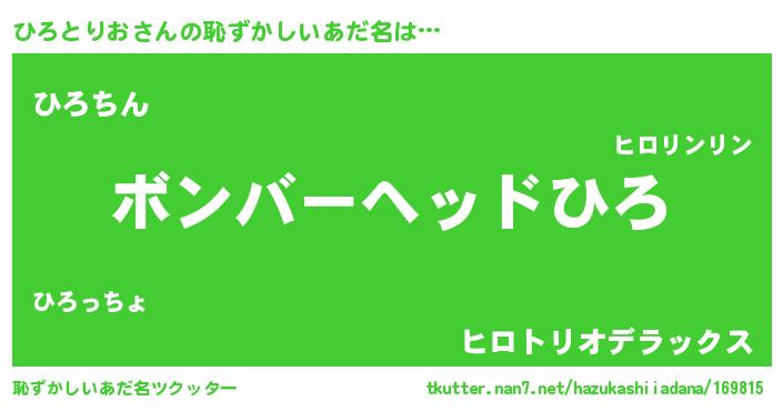 | ヘコむあだ名 | 『ひろとりお(遠い目)』『ひろぷりん』 |