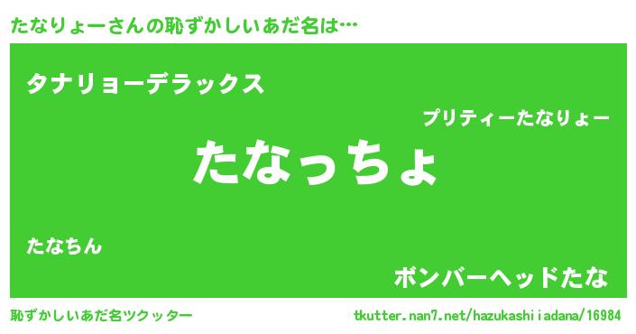 | ファンタジー風あだ名 | 『エターナルタナリョーー』『ゼタナトゥ』 |