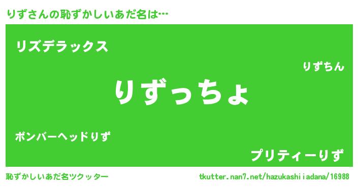 | ヘコむあだ名 | 『なまこ酢』『りずふぇ~』『りずを』 |