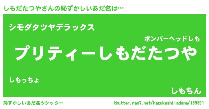 | 男性向けラノベタイトル風あだ名 | 『しもだたつやの憂鬱』 |