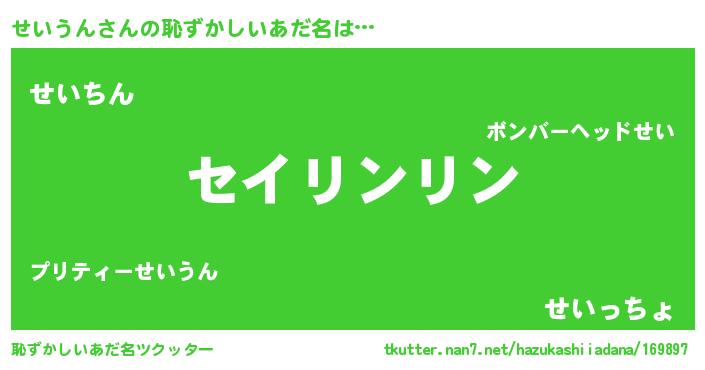 | ヘコむあだ名 | 『せい太郎』『せいうん(笑)』 |