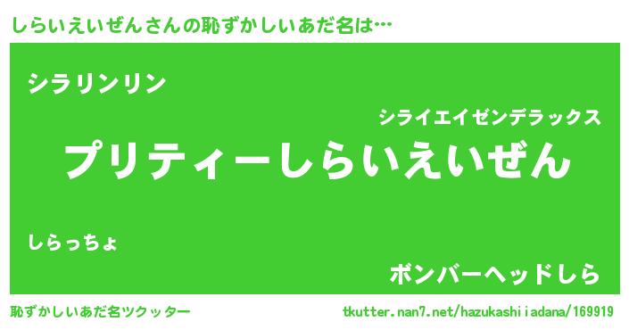 | 意味不明あだ名 | 『ペロリンしらいえいぜん』 |