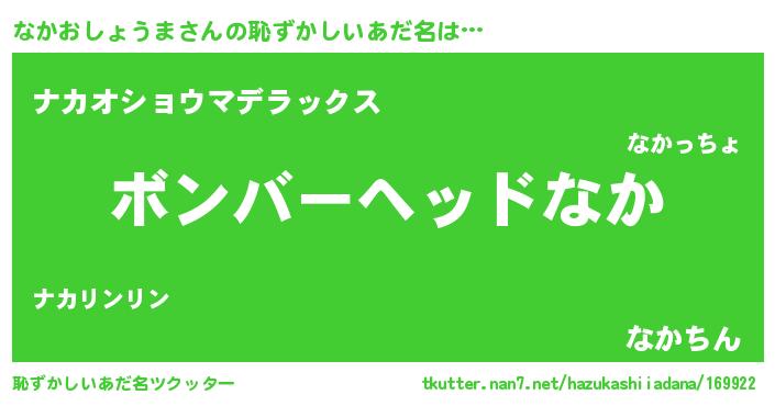 | ヘコむあだ名 | 『なかおしょうま(苦笑)』『なまこ酢』 |