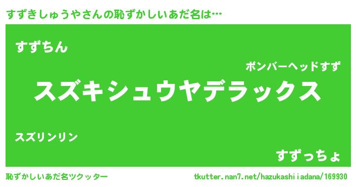 | ヘコむあだ名 | 『すずきしゅうや(遠い目)』『豆乳』 |