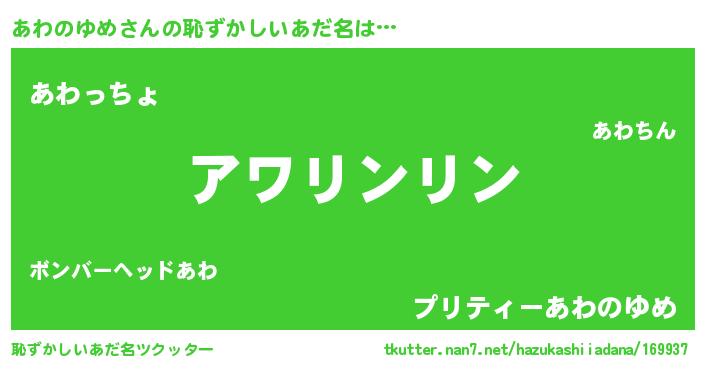 | 意味不明あだ名 | 『住所不定無職あわのゆめ(13歳)』 |