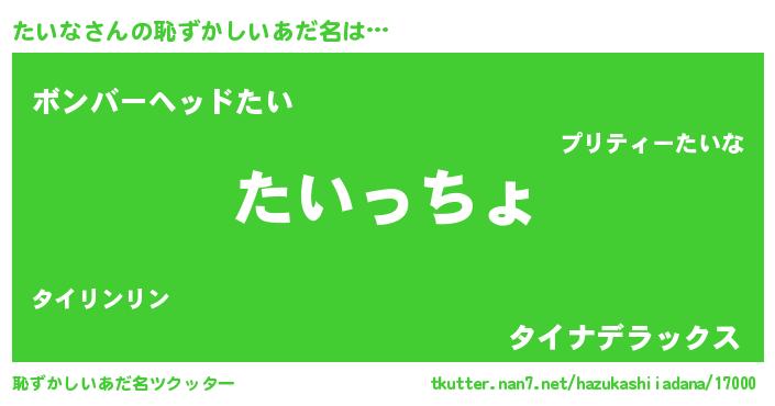 | ヘコむあだ名 | 『豆乳』『たいにゅー』『たいお』 |