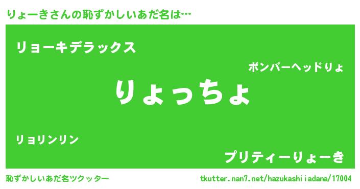 | 意味不明あだ名 | 『りょーきフォーエバー』『自称りょーき』 |