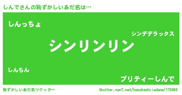 | 意味不明あだ名 | 『とにかく怪しいしんで』『自称しんで』 |