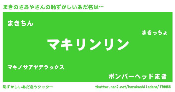 | 意味不明あだ名 | 『とにかく怪しいまきのさあや』 |