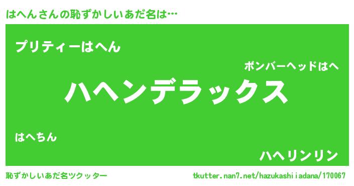 | 男性向けラノベタイトル風あだ名 | 『Re:はへんから始める異世界生活』 |
