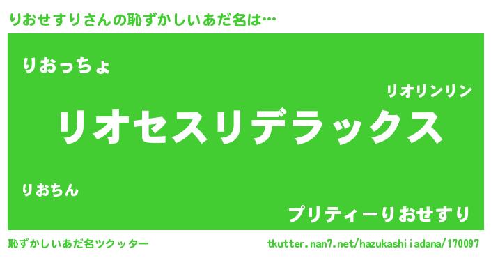 | 男性向けラノベタイトル風あだ名 | 『はたらくりおせすりさま!』 |