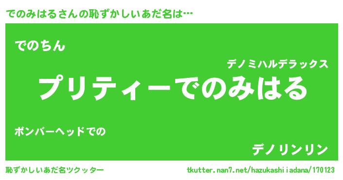 | ヘコむあだ名 | 『でのにー』『でのみはる(小並感)』 |