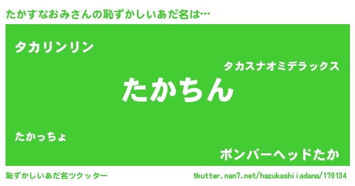| ヘコむあだ名 | 『たかすなおみ(笑)』『たかぷりん』 |