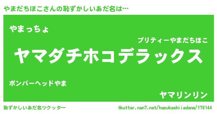 | 男性向けラノベタイトル風あだ名 | 『Re:やまだちほこから始める異世界生活』 |