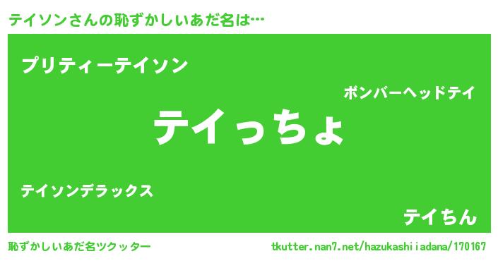 | 意味不明あだ名 | 『テイソンフォーエバー』 |