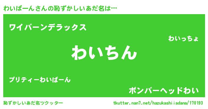 | 胡散臭い通販商品みたいなあだ名 | 『前代未聞の健康食品…その名も「わいばーん」』 |