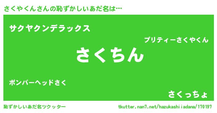 | ヒーロー風カッコイイあだ名 | 『ネオサクヤクン』『スーパーサクヤクン』 |