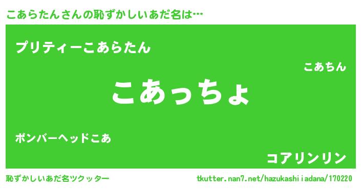 | 意味不明あだ名 | 『住所不定無職こあらたん(77歳)』 |
