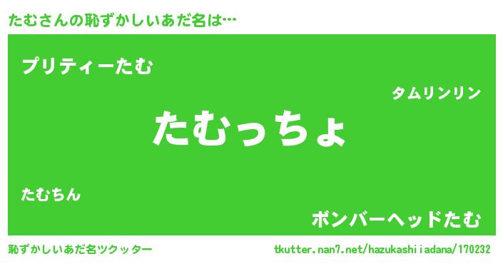 | ヒーロー風カッコイイあだ名 | 『ウルトラたむマン』『スーパータム』 |