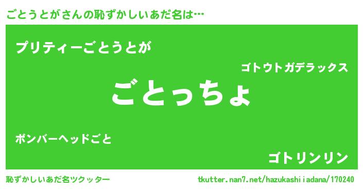 | 意味不明あだ名 | 『ごとうとがフォーエバー』 |