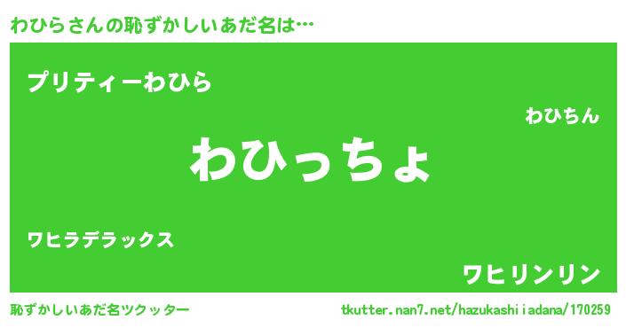 | 意味不明あだ名 | 『わひらフォーエバー』『ペロリンわひら』 |