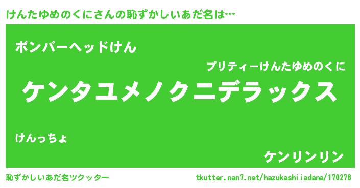 | 意味不明あだ名 | 『自称けんたゆめのくに』 |
