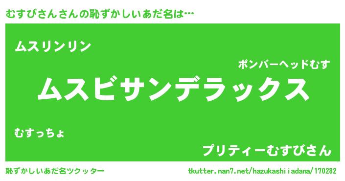 | ヒーロー風カッコイイあだ名 | 『超時空戦士ムスビサン』『仮面ムスダー』 |