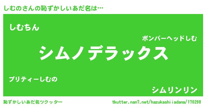 | ヘコむあだ名 | 『しむの(遠い目)』『しむ太郎』 |