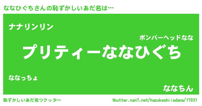 | 男性向けラノベタイトル風あだ名 | 『ななひぐちの憂鬱』 |