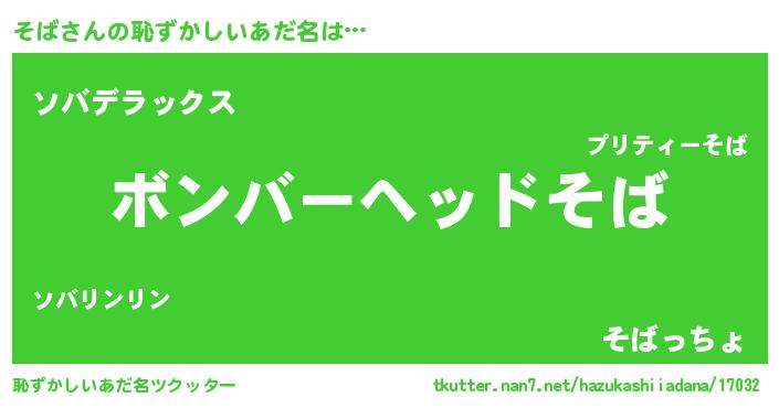 | 女子向けラノベタイトル風あだ名 | 『そば恋絵巻』『そばストレイドッグス』 |