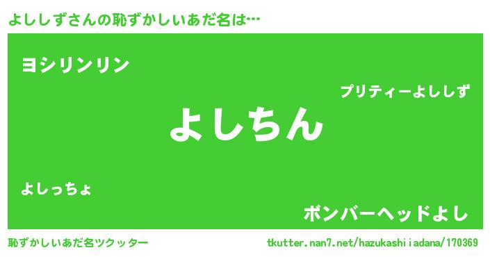 | ヘコむあだ名 | 『よししず(震え声)』『よしを』 |