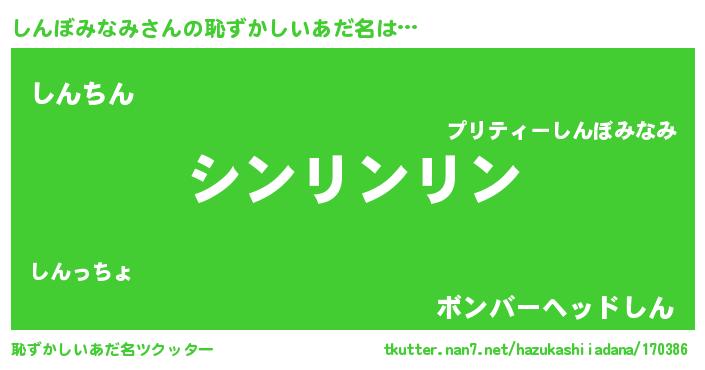 | ヘコむあだ名 | 『しん太郎』『しんぼみなみ(震え声)』 |