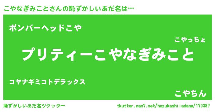| ヘコむあだ名 | 『こやふぇ~』『こやなぎみこと(遠い目)』 |