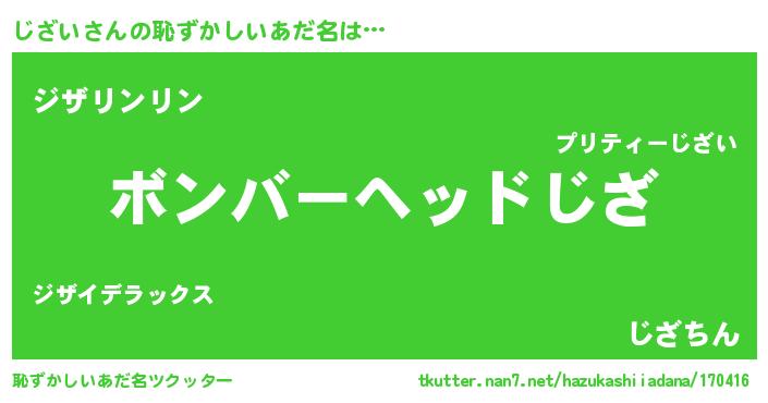 | ヘコむあだ名 | 『じざっぺ』『じざい(震え声)』 |
