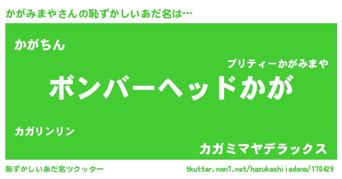 | ヘコむあだ名 | 『かがみまや(小並感)』『かがっふぃ~』 |
