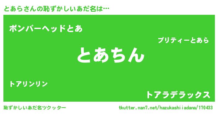 | ヘコむあだ名 | 『とあら(苦笑)』『とあふぇ~』 |