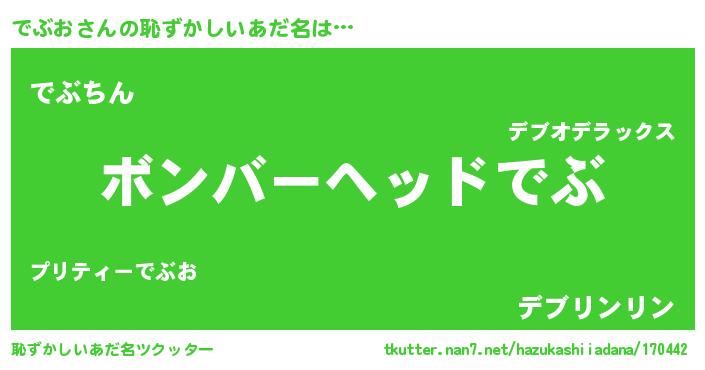 | 男性向けラノベタイトル風あだ名 | 『転生したらでぶおだった件』 |