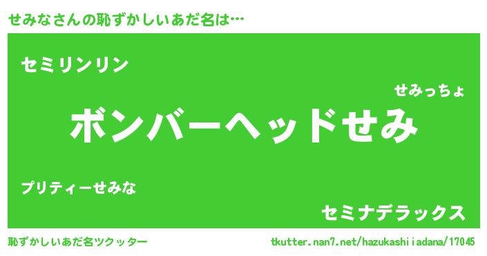 | 意味不明あだ名 | 『眠気覚ましガムせみな味』『自称せみな』 |