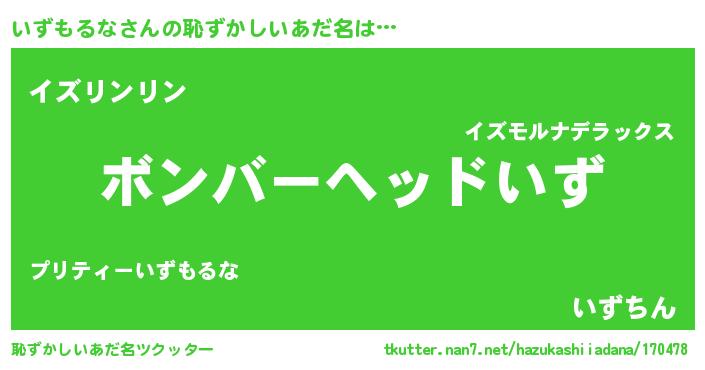 | ヘコむあだ名 | 『いずっちょ』『いずもるな(笑)』 |