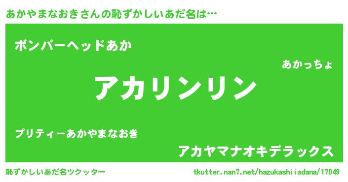 | 意味不明あだ名 | 『とにかく怪しいあかやまなおき』 |