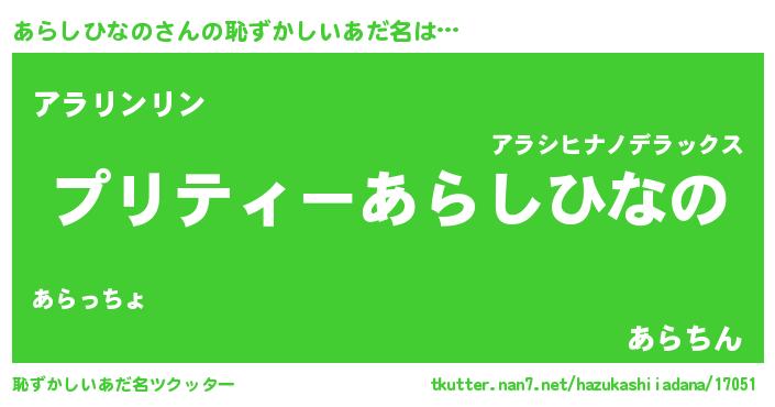 | 胡散臭い通販商品みたいなあだ名 | 『必ず成功するブレスレット…その名も「あらしひなの」』 |