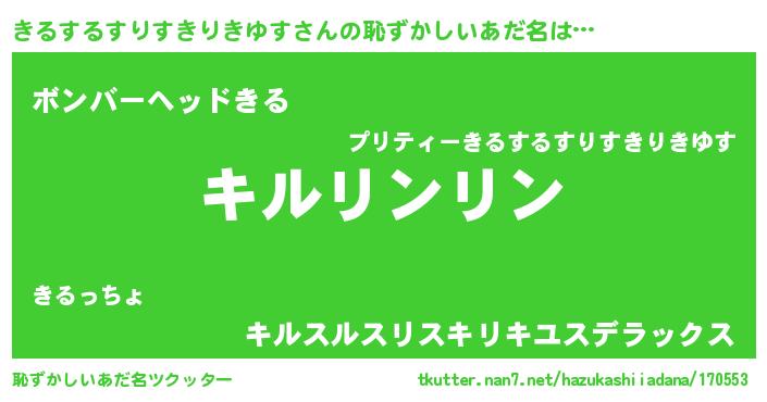 | 胡散臭い通販商品みたいなあだ名 | 『信頼と実績のサプリメント…その名も「きるするすりすきりきゆす」』 |